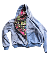 Blue/Black Heavyweight Cropped Fullzip Distressed Jacket